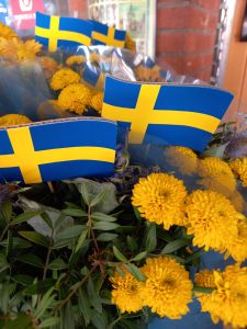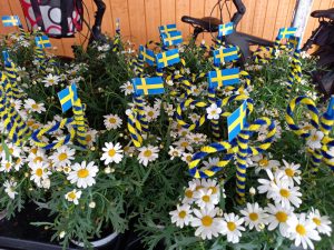 Und in den „normalen“ Geschäften rüstet man sich für die Midsommar-Feier. Übrigens das zweitwichtigste Familienfest der Schweden nach Weihnachten.