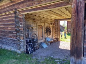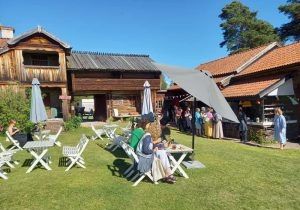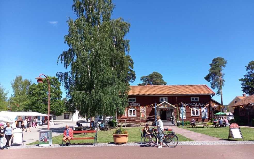 Am Nachmittag machen wir uns zusammen mit unseren Hunden auf, die Gegend zu erkunden. Und wir wollen sehen, wo Rättviks Gammelgård, so eine Art Freilichtmuseum, ist. Dort soll morgen der Festumzug anlässlich Midsommar enden.