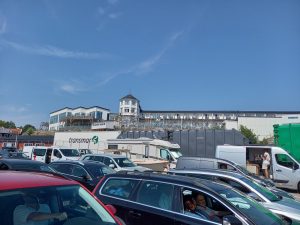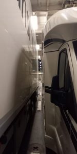 Und wir werden links neben den LKW geleitet 😬… sieht eng aus 😬