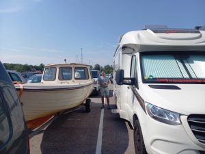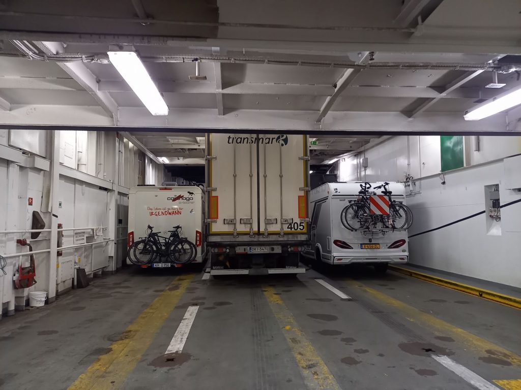 Die Hunde lassen wir im etwas abgedunkelten WoMo mit Belüftung und Wasser. Die hätten an Deck keinen Spaß. Außerdem wäre es eh sehr schwierig, sie aus dem WoMo zu kriegen 🤪😂.