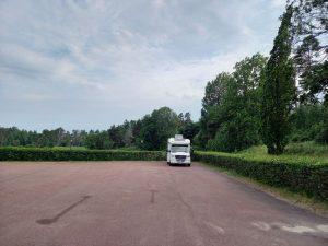 … und dann ein paar Kilometer weiter zu Eckerö kyrka – die Kirche von Eckerö. Hier gibt es einen großen Parkplatz, wo wir heute Nacht bleiben werden.