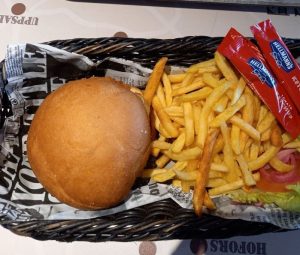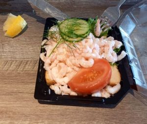 Krabbenbrot für Stefan und für mich einen Veggieburger 😋.