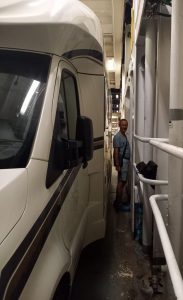Und es ist ganz schön eng 😯😏. So eng, dass wir die Aufbautür nicht aufmachen können und uns aus der Fahrertür schälen müssen 🤨. Das geht bestimmt besser.