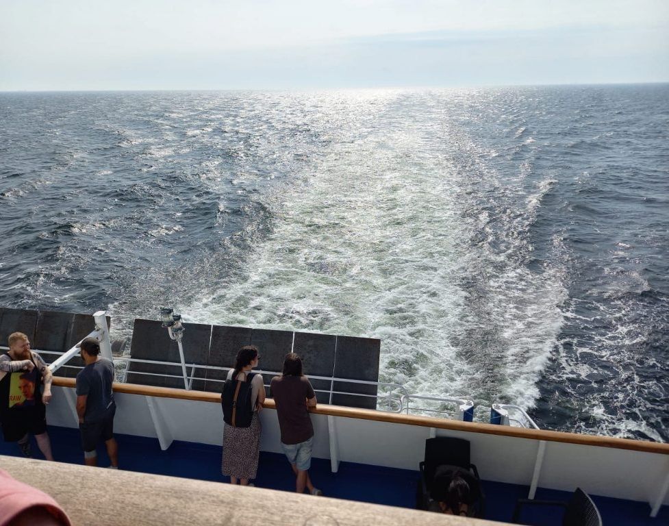 Die Überfahrt ist recht ruhig – zumindest die See 😉. Hier an Bord geht es feuchtfröhlich her, die Schweden trinken recht viel – ein großer Becher Bier für knapp 10 Euro, Wein 0,25 l etwa 9 Euro – Schnäppchen 😄.