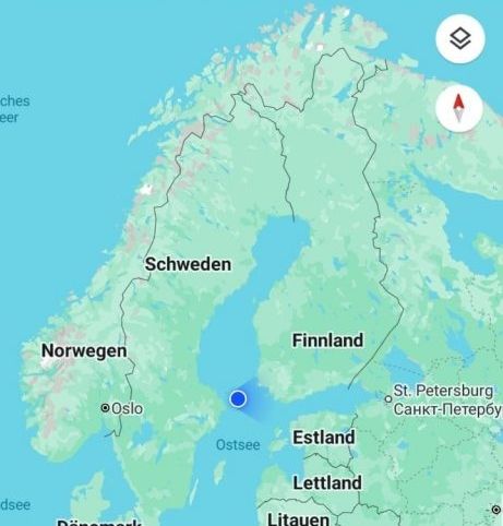 Wir sind jetzt auf Åland, dem zweiten Etappenziel auf unserer Nordlandtour 🤗 – da, wo der blaue Punkt ist.