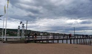 Wir laufen nur ein Stück auf der Brücke – unsere Hunde mögen die Holzbohlen nicht 🤭🙃. Aber es reicht, um noch ein paar schöne Bilder vom Siljan zu machen.