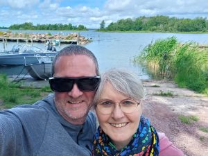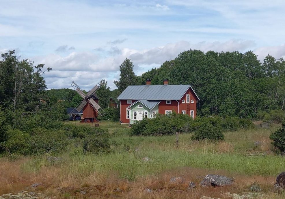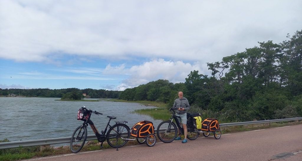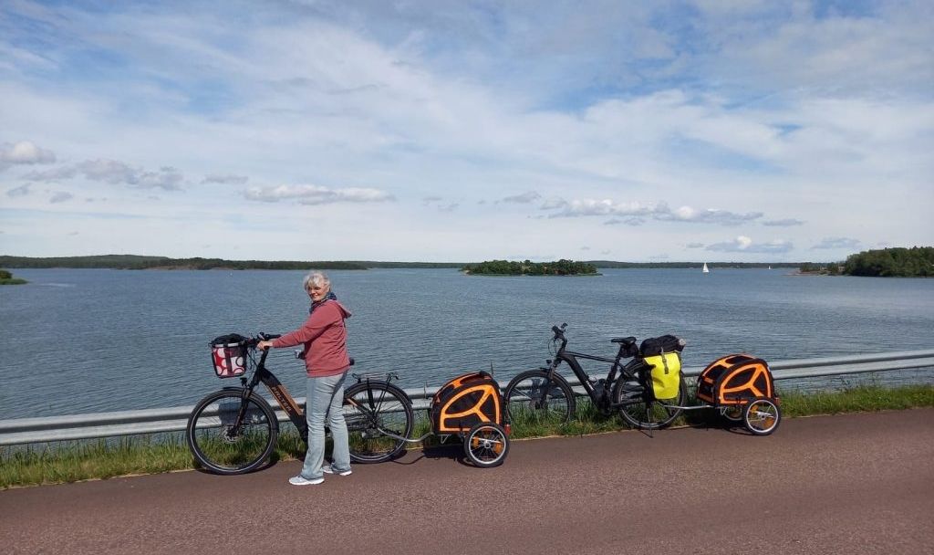 Heute ist es von oben trocken und der Himmel nur noch teilweise bedeckt. Aber der Wind ist hartnäckig 🌬. Wir frühstücken erstmal in aller Ruhe und entschließen uns dann gegen 13 Uhr mit den Fahrrädern inkl. Hunden die Insel(n)  zu erkunden. Wir wollen von Mariehamn bis an die Südspitze auf die Insel Järsö radeln, ca. 10 km.