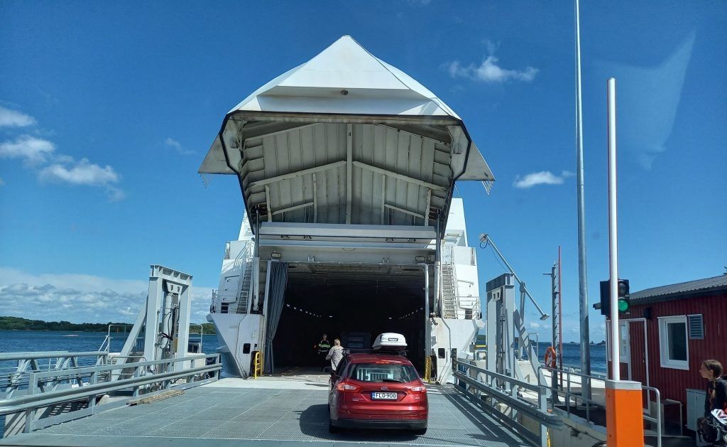 Die Fähre nach Ösnas ist bereits da und wir dürfen auch bald rein fahren.