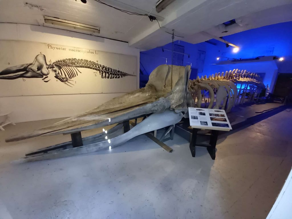 Hier wird das Skelett eines 18,5 m langen Pottwals ausgestellt.