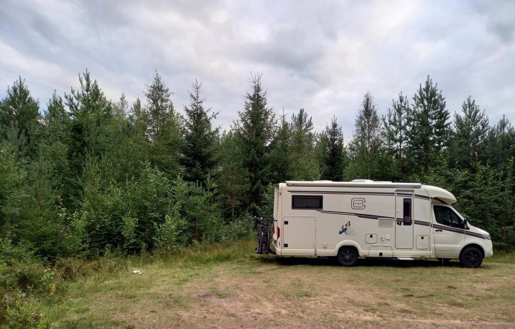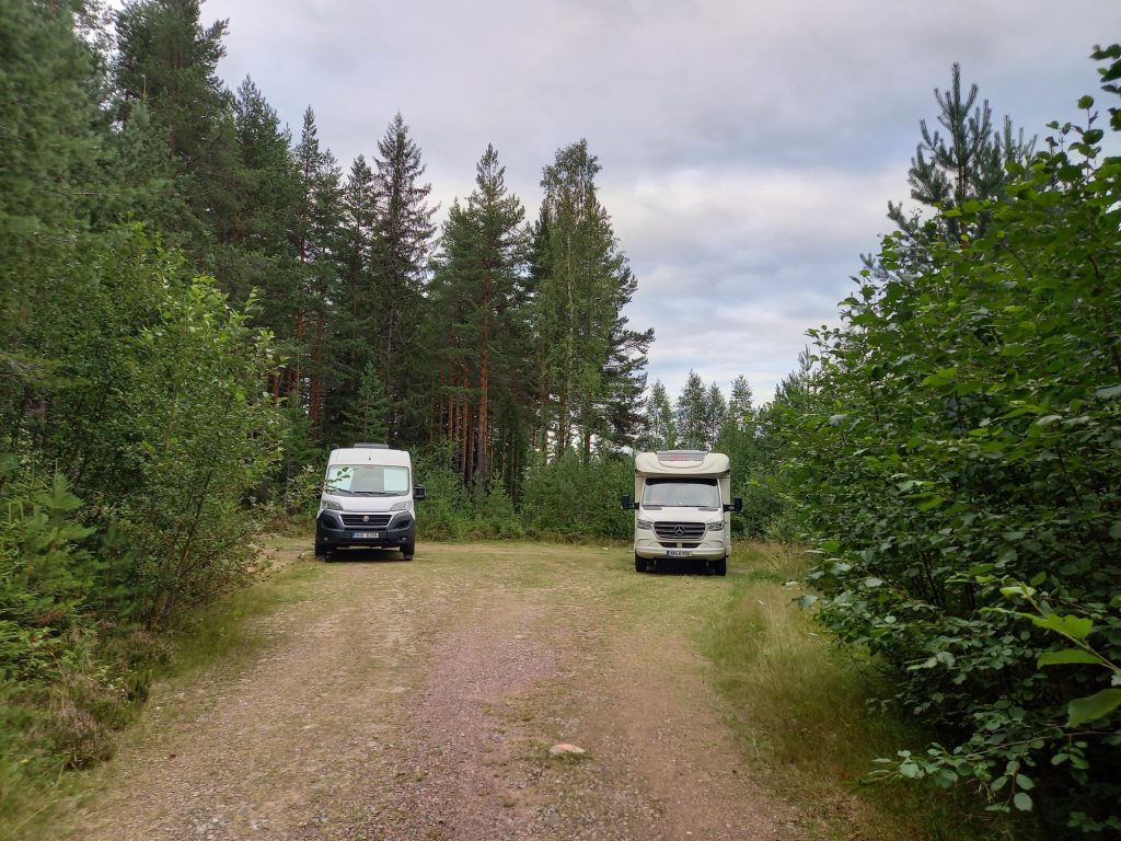 Also weiter auf der E45 Richtung Karlstad. Ca. 15 km hinter Mora fahren wir einen kleinen Waldweg rein und haben „unseren“ Platz für die Nacht gefunden. Es steht bereits ein Kastenwagen aus CZ (Tschechien) hier, aber das passt.