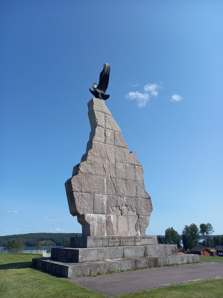 Vorher eine kleine Pause an einem Denkmal, das das hiesige Värmland zeigt und mit einem Adler gekrönt ist. Wurde als Andenken für die schwedischen Auswanderer nach Amerika und die finnischen Einwanderer errichtet.