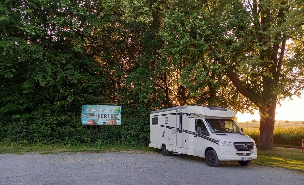 Unsere letzte Nacht verbringen wir auf einem kleinen Parkplatz beim Freibad in Seesen-Rhüden.