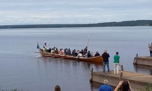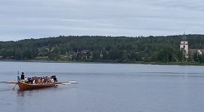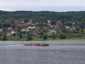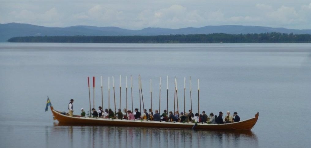 Und von dort sehen wir dann auch ein geschmücktes Ruderboot inkl. Geigern am Steg vorbeiziehen. Denn mit zum Bild vom Siljan gehören die Kirchboote. Sie werden mit 20 Personen gerudert. Es gibt richtige Rennversionen dieser Boote, mit denen im Sommer Wettbewerbe auf dem See ausgetragen werden. Die Wettbewerbe auf dem See haben Tradition. Wahrscheinlich war es früher einfach von Vorteil, schnell rudern zu können: Wer als erster in der Kirche ankam, konnte sich seinen Platz aussuchen.