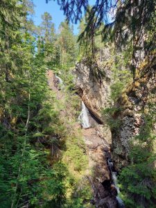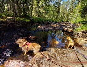 Wir laufen mir den Hunden quasi einmal um den Wasserfall herum. Wirklich sehr lohnenswerter Ausflug.