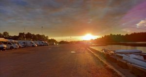 Der Stellplatz Stugsundskajen für 154 SEK inkl. herrlicher Abendsonne.